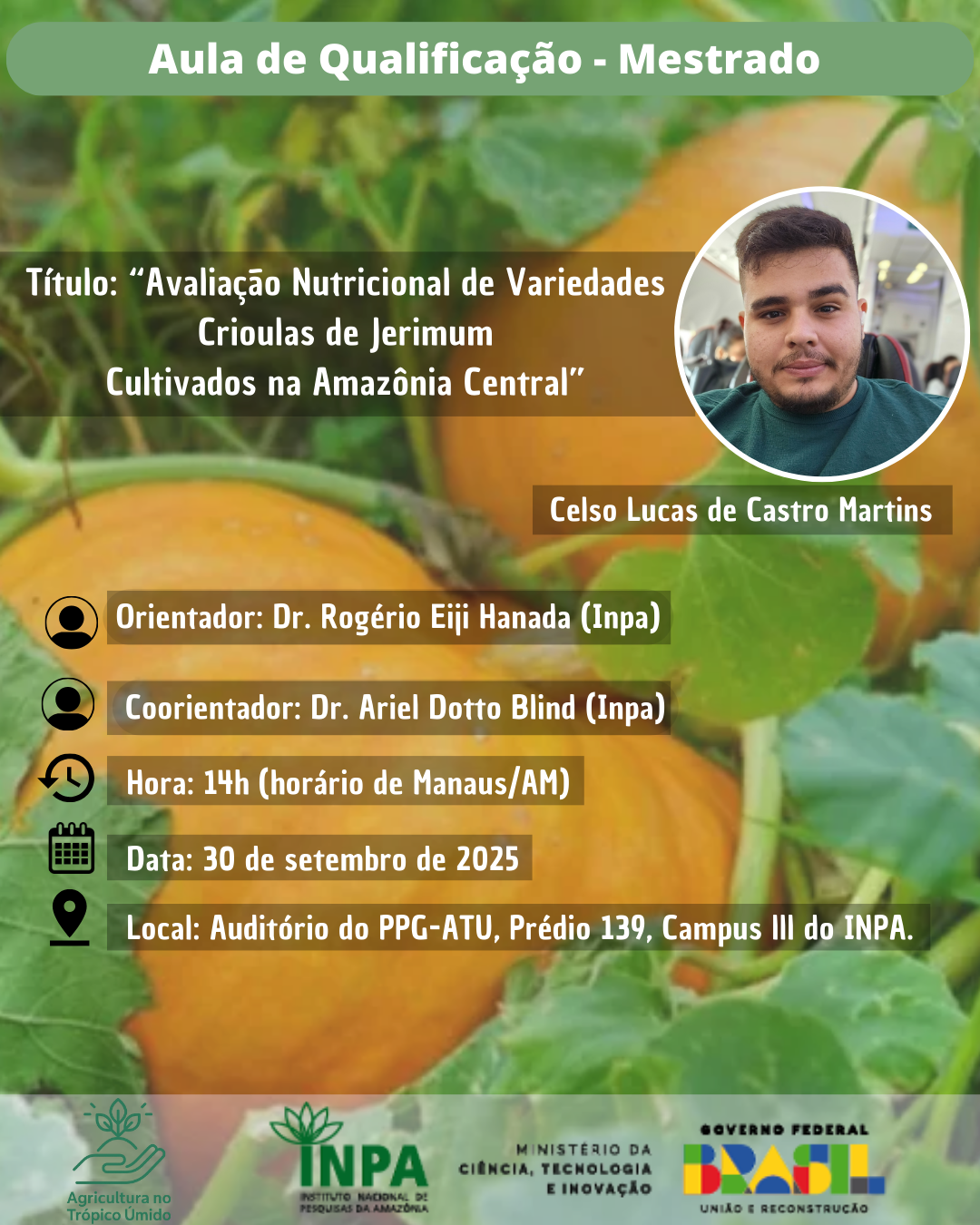 O evento será no dia 25/08/2025, às 14:00h (horário de Manaus/AM) no Auditório do PPG-ATU, prédio 139, campus III do INPA.