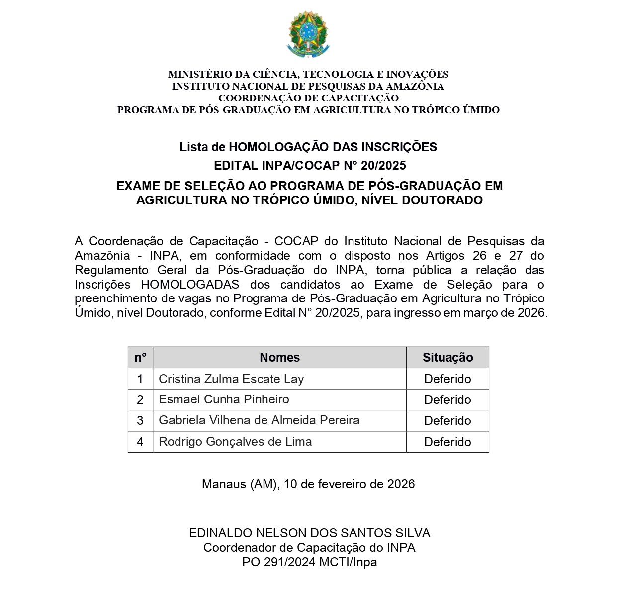 1 – Paulo Adelino de Medeiros (INPA)