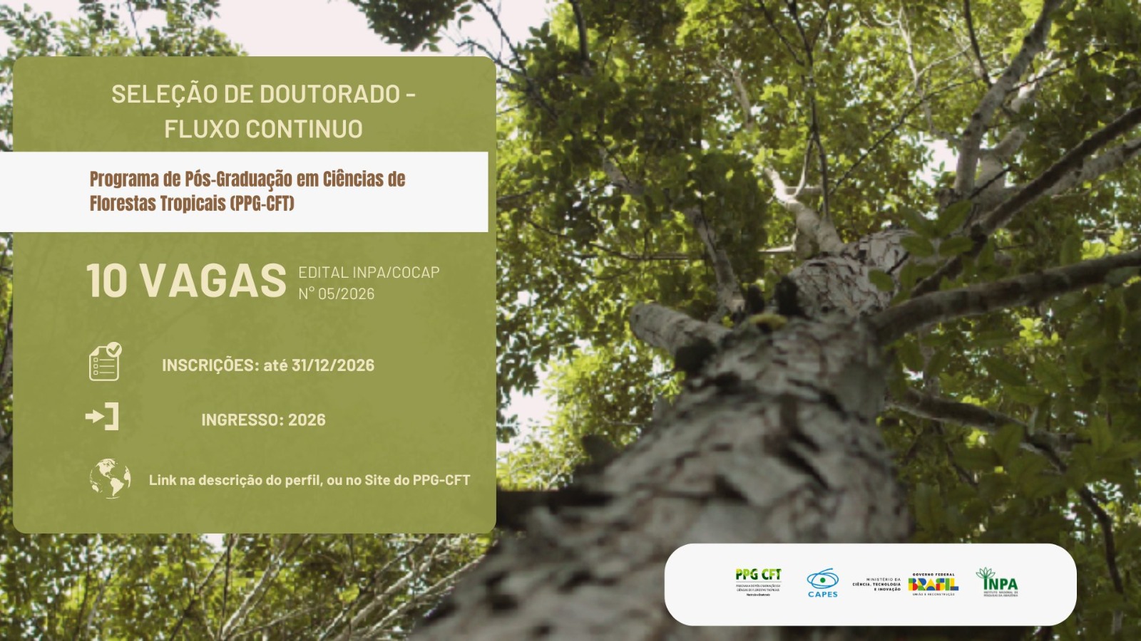 Estão abertas as inscrições para o processo seletivo de doutorado 2026. O processo seletivo será em modalidade fluxo contínuo e permanecerá com inscrições abertas até 31 de dezembro de 2026 às 23h59min (horário de Brasília).