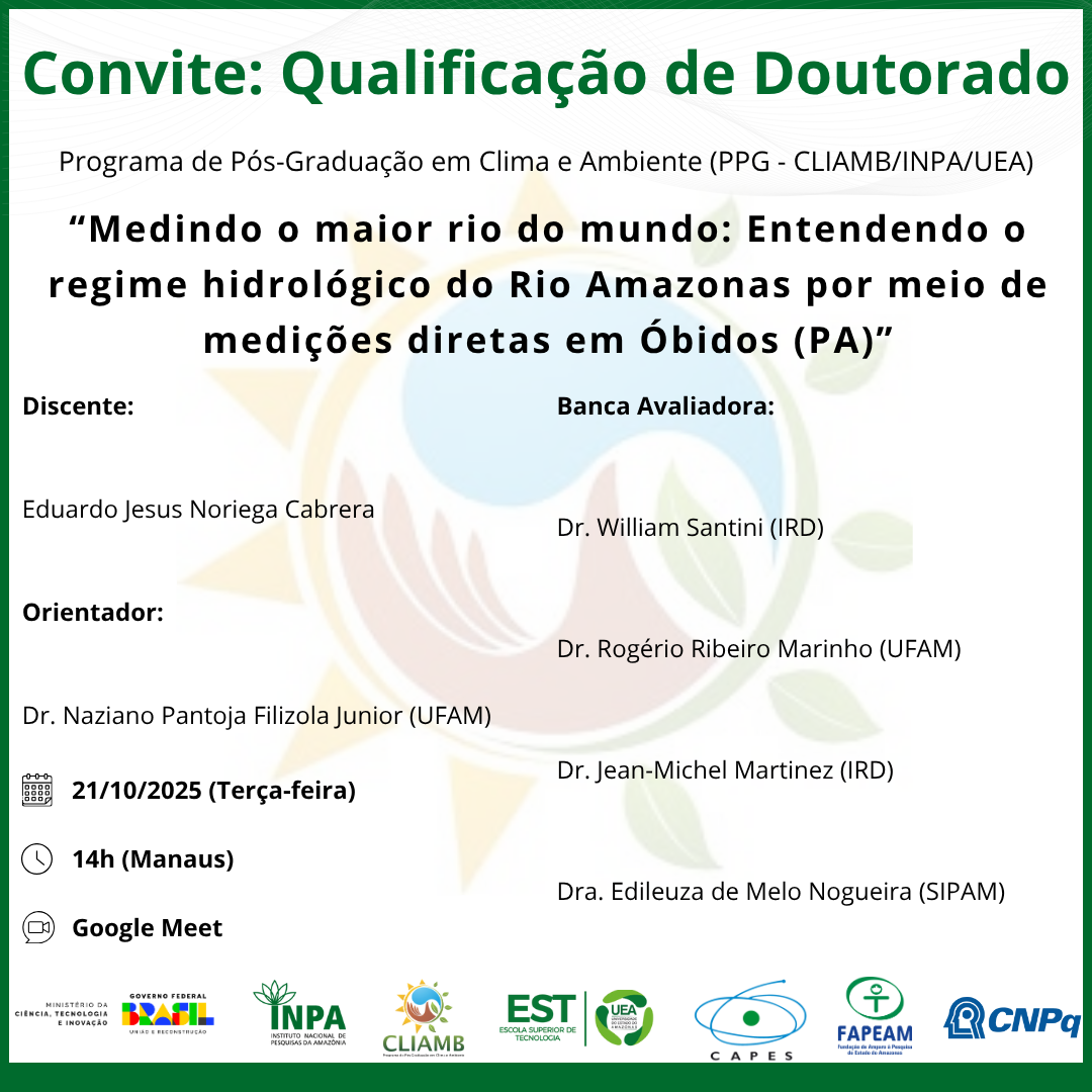 O egresso do PPG-Cliamb (INPA/UEA) em parceria com pesquisadores do Laboratório de Modelagem do Sistema Climático Terrestre (LABCLIM) e demais instituições, Jerfferson Lobato dos Santos, publicou um importante estudo na revista Open Journal of Modern Hydrology (SCIRP)!