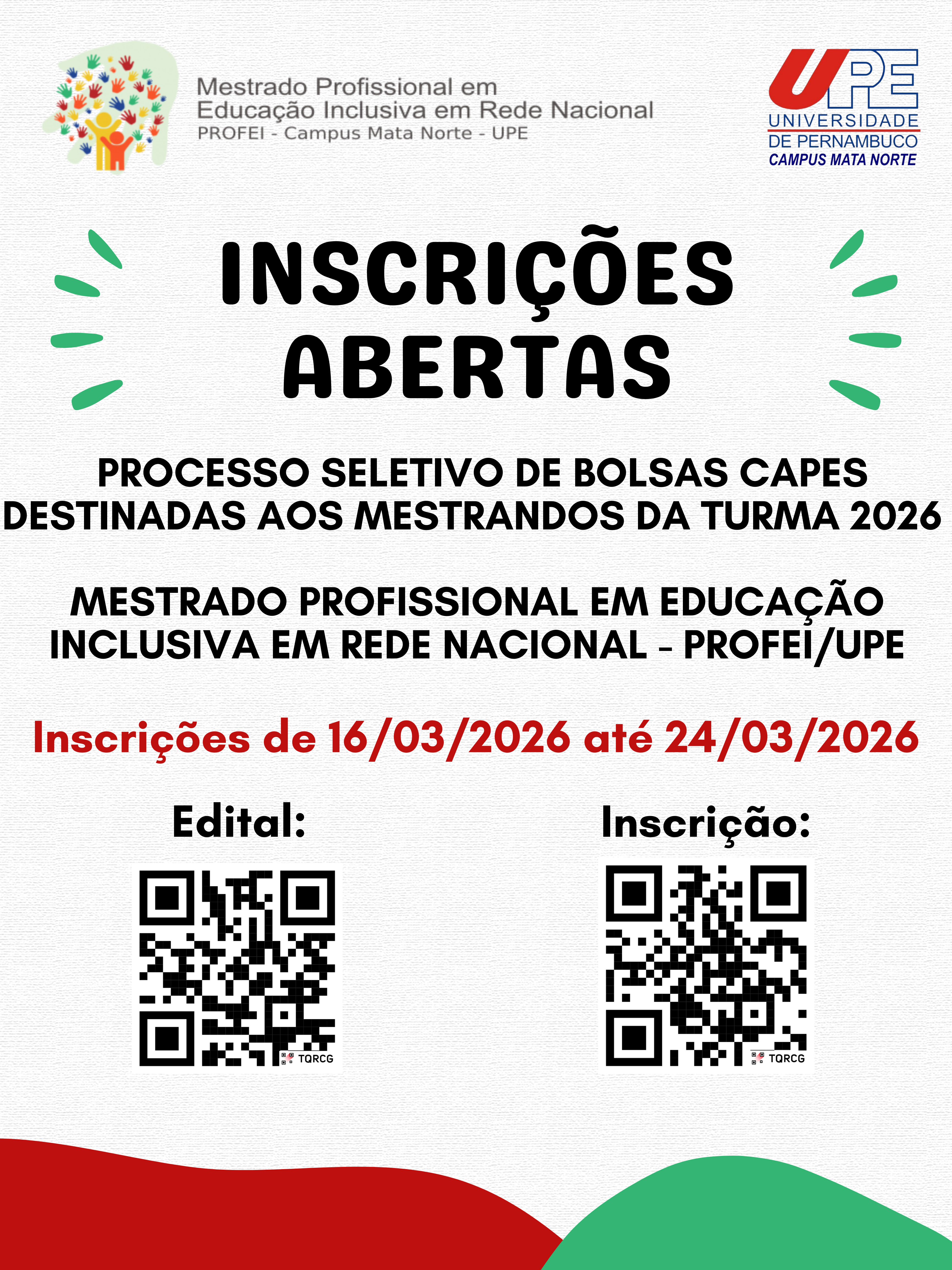 Edital de Seleção de Bolsistas Capes- Mestrado Profissional Educação Inclusiva.