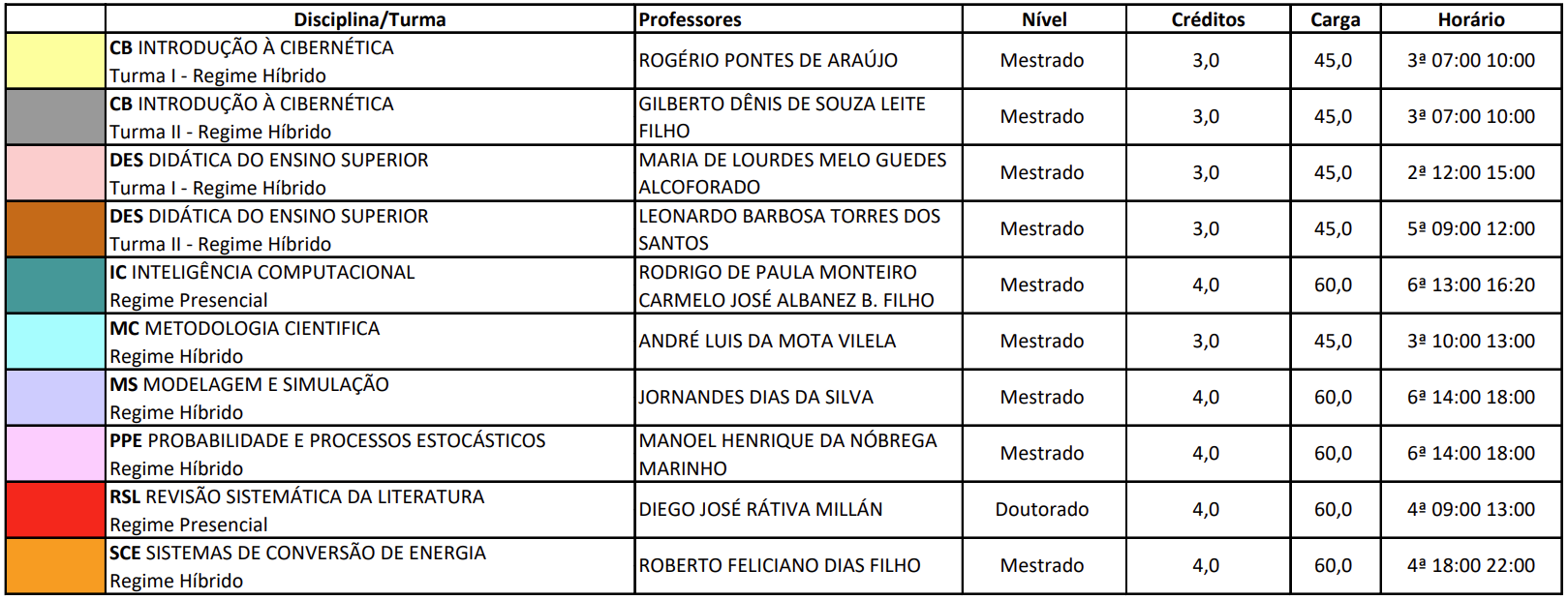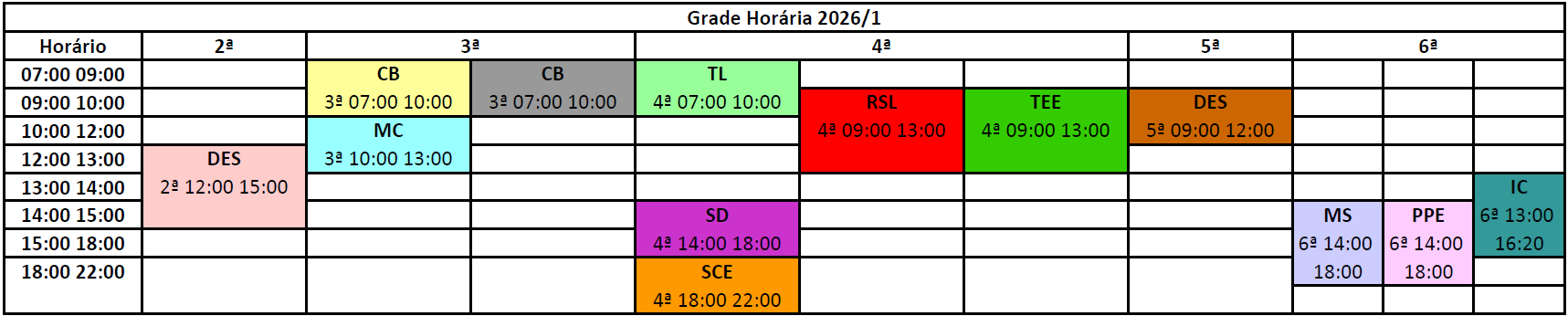 Também disponível no link: Grade Horária 2026.1