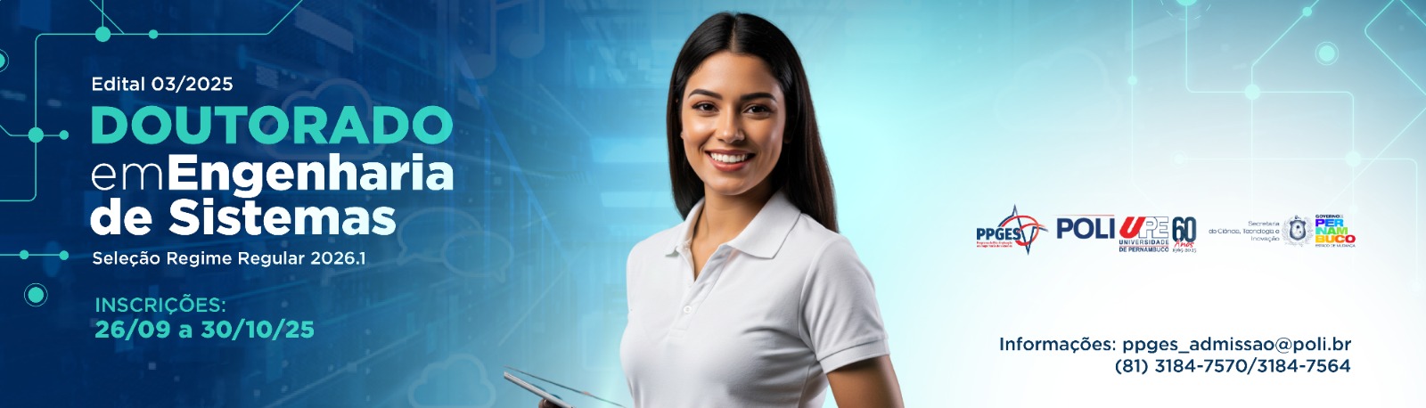 A Coordenação do Programa de Pós-Graduação em Engenharia de Sistemas da Universidade de Pernambuco torna pública a abertura do EDITAL 03/2025 - REGIME REGULAR - DOUTORADO EM ENGENHARIA DE SISTEMAS DA POLI/UPE.