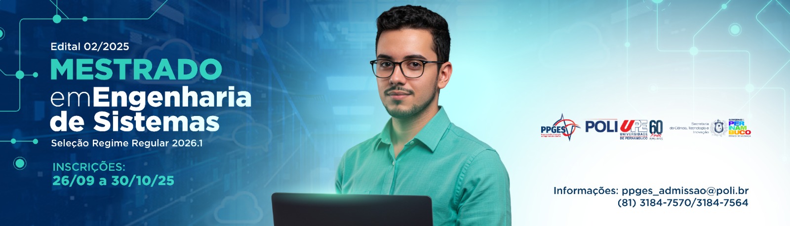 A Coordenação do Programa de Pós-Graduação em Engenharia de Sistemas da Universidade de Pernambuco torna pública a abertura do EDITAL 02/2025 - REGIME REGULAR - MESTRADO EM ENGENHARIA DE SISTEMAS DA POLI/UPE.