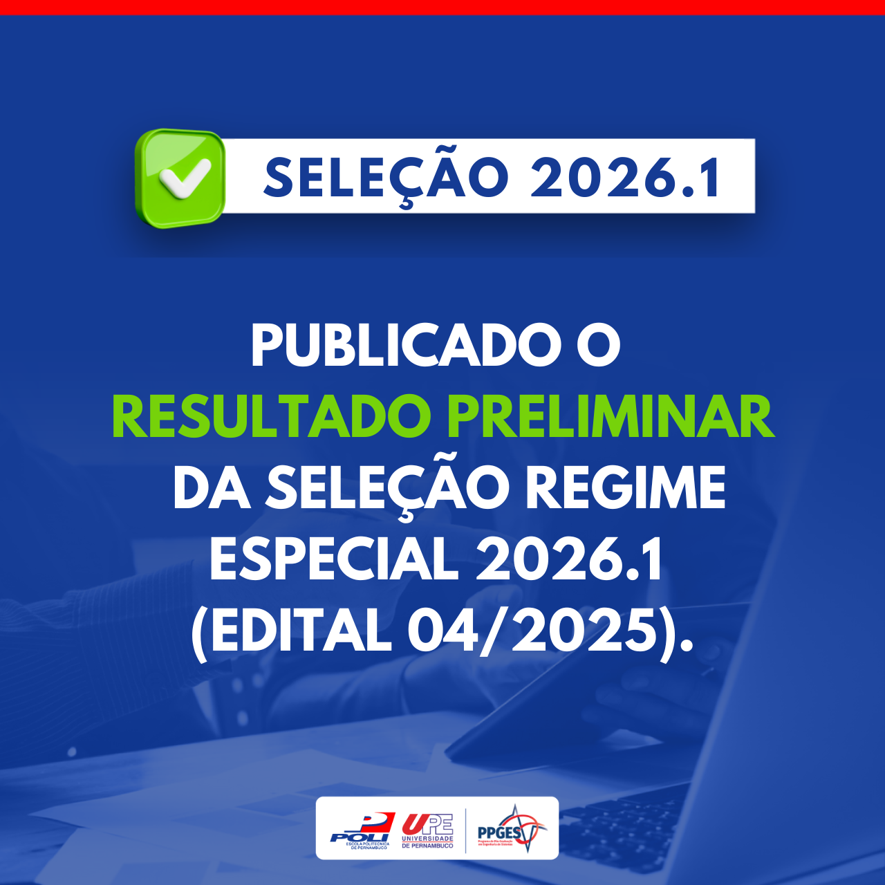 RESULTADO PRELIMINAR SELEÇÃO REGIME ESPECIAL 2026.1